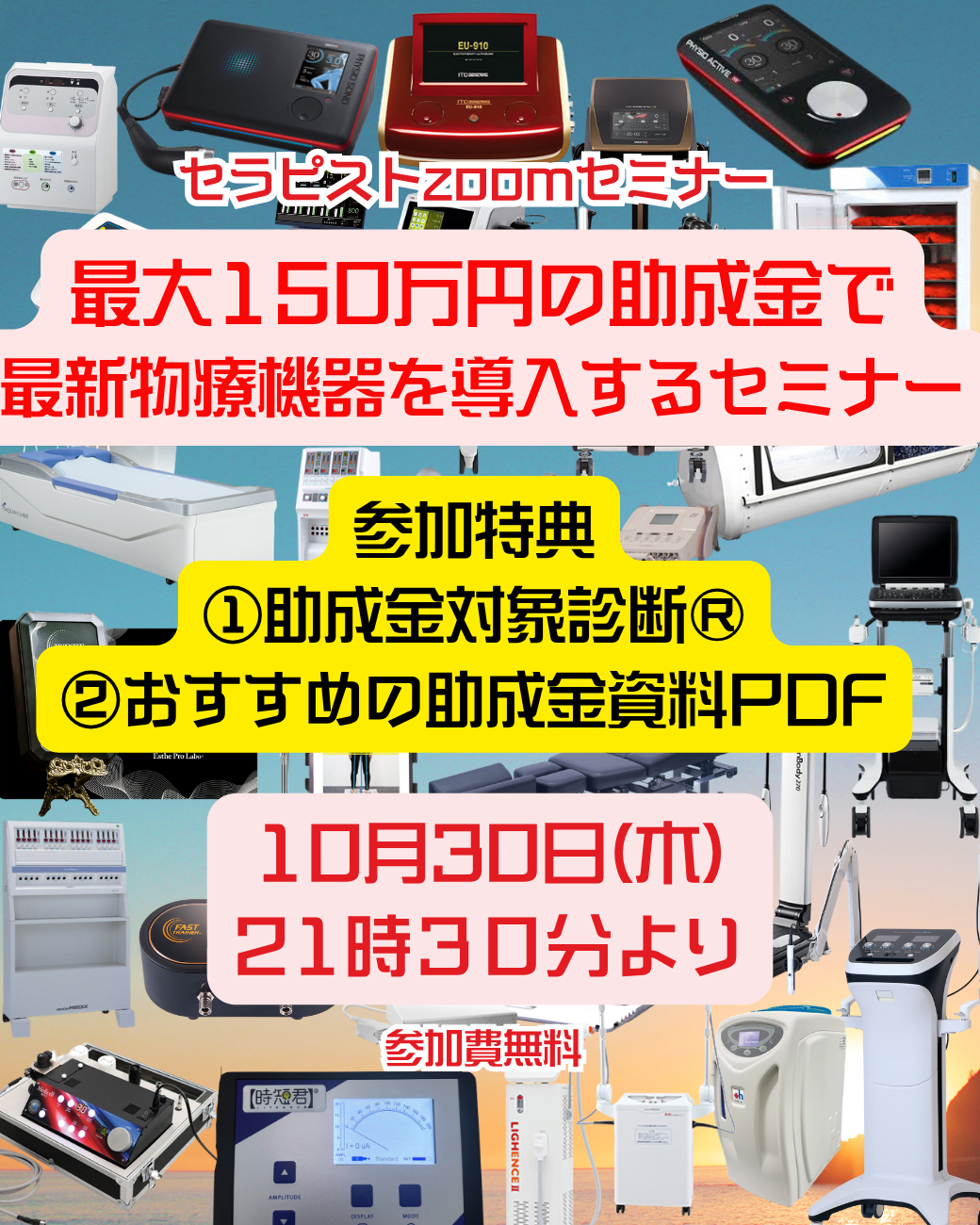 【助成金最大150万円】最新物療機器 導入セミナー参加申込フォーム